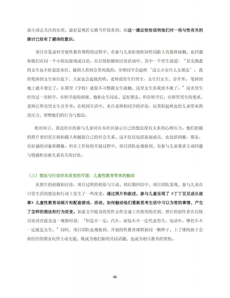 《生活情境中的性教育—L 村与 H 社区儿童性教育影像发声法研究的项目报告》