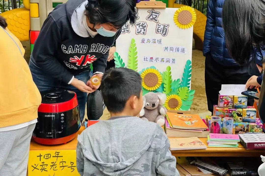 义卖当天,除了在园的孩子和家长外,还有毕业十几年的哥哥姐姐和刚刚踏入小学的孩子们,他们都自豪的说,“我们是骏泽幼儿园的!”