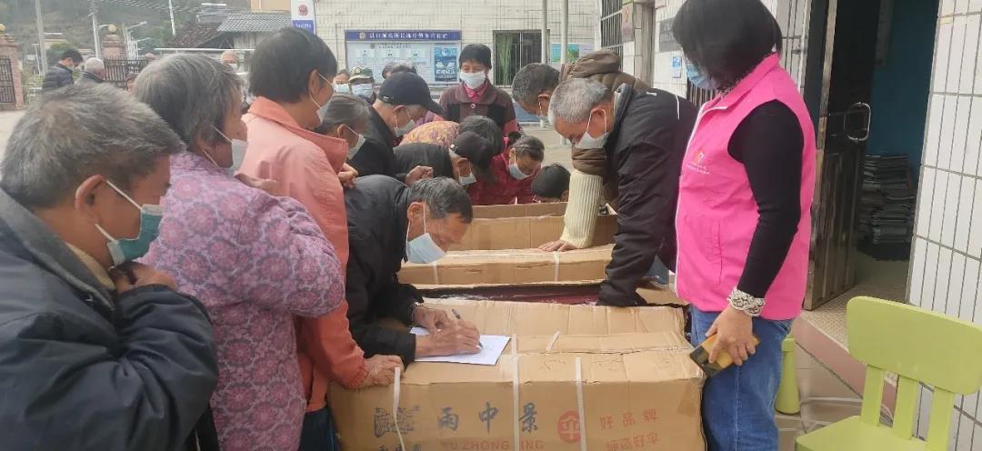 2022年1月14日,长流村半乡学堂联合长流村村委、长流村社区慈善基金组织了“爱心送伞”活动,为村内250名60岁以上的老人派发带拐杖功能的雨伞。