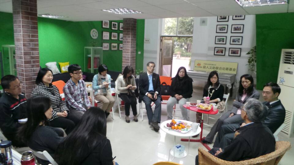 2013年12月10日下午,叶先生不顾长途飞行的劳累,一到广州即莅临绿芽基金会,与十几位来自企业界、法律界、公益界的公益行动者进行交流分享。