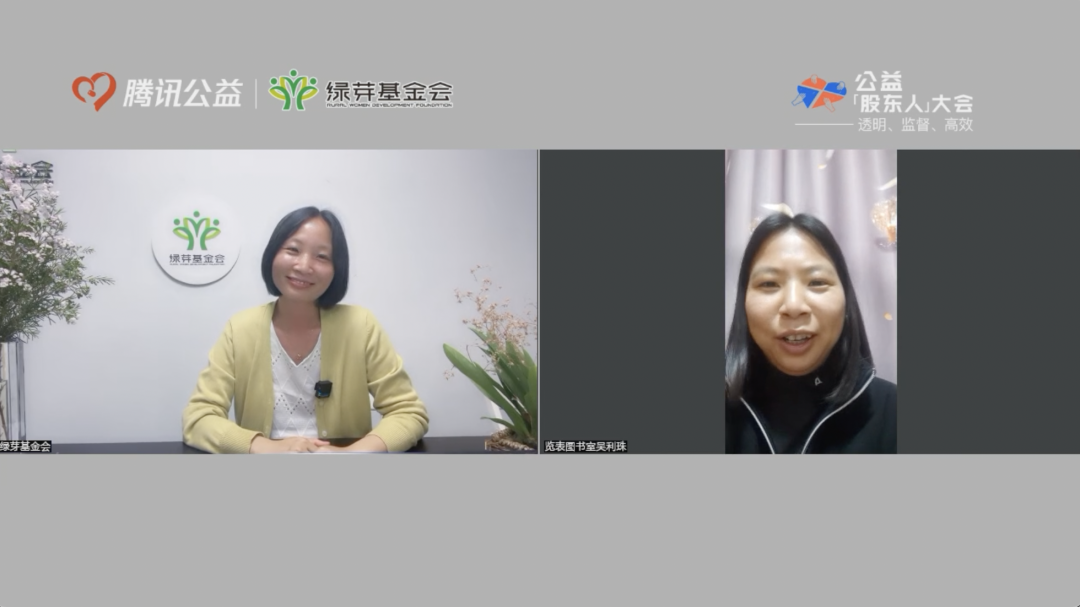 为了让公众更真切地了解乡村妇女获得支持后的变化,我们更邀请了合作多年的乡村姐妹现场连线,一起聊聊当年与绿芽相识的故事,在她们的分享中,我们看到乡村妇女绽放的光彩,除了自身能力得到提升,她们链接资源、关注乡村在地留守儿童的成长需求,她们更发挥榜样的力量,带动更多的乡村妇女走出家门,实现创变梦想。