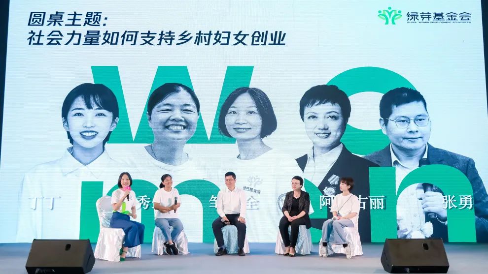 在圆桌环节,始兴县绿芽社会工作服务中心创办人吴秀兰、四川海惠助贫服务中心副主任张勇、海南自由贸易港金融发展中心特聘专家阿孜古丽与儿童艺术研学联盟主理人丁泽欣参与讨论,大家结合自己的亲身经历,分享对乡村女性的印象与面临的困难,为如何推动社会力量支持乡村妇女创业建言献策。张勇认为乡村女性在创业的过程中面对着创业资金、生产技术、营销渠道、经营管理和风险控制等各方面的问题。阿孜古丽则提到社会各界的力量可以多支持乡村姐妹的学习,让乡村姐妹能够有所借鉴,在实践中慢慢壮大。