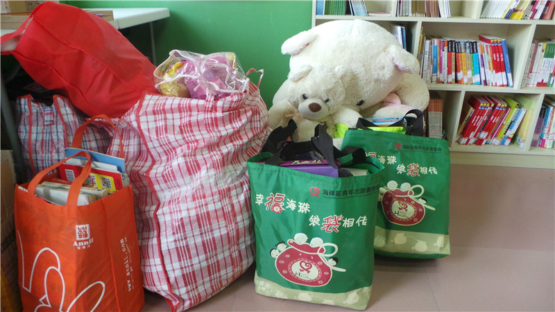 2014年1月18日,助励社会服务发展社通过举办珠江帝景社区小主人爱心义卖市集活动(由广爱同行社区公益计划资助、赤岗街文化站主办),为绿芽基金会募集了三千多件物资,包括书籍、玩具、文具、衣物等。2014年1月22日中午,应助励团队的紧急召集,珠江帝景社区的两名爱心车主帮忙把这些物资中的一部分(四大袋)运抵长流村的绿芽亲子阅览室。同时运达的还有由 “幸福海珠 袋袋相传”项目(海珠区团委主办、海珠区青年志愿者协会协办)支持的10袋崭新的文具及食物等。