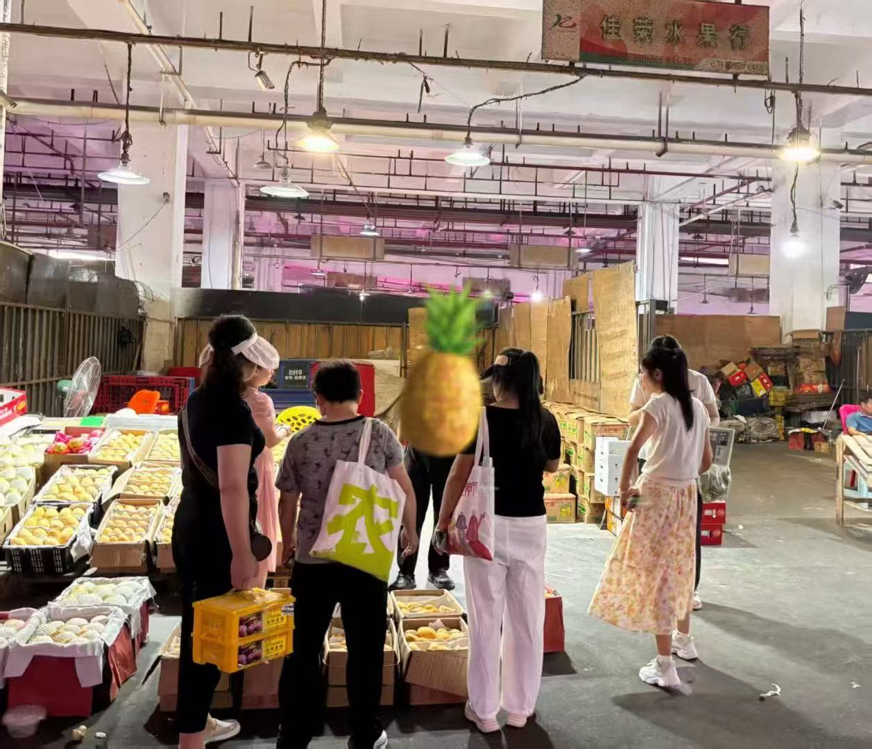 7日上午,大家去到全国最大的果蔬批发市场——江南市场调研考察。姐妹们先坐观光车游览了整个市场园区,然后再分成2人一组自行去各自感兴趣的园区考察调研,了解产品的品类、产地、供货量规模、价格等信息。