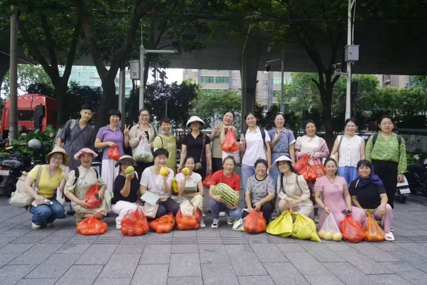 8日上午,为了让姐妹们了解城市消费者所处的市场环境、有怎样丰富的商品选择、一线城市终端的产品情况,以及不同类型的店是怎样回应不同层级的消费者需求,绿芽基金会工作人员带领姐妹们前往天河区天河北、龙口西一带的居民生活区和商圈,考察调研七鲜、百果园、钱大妈、盒马鲜生、美宜多、Ole等十余家生鲜店。