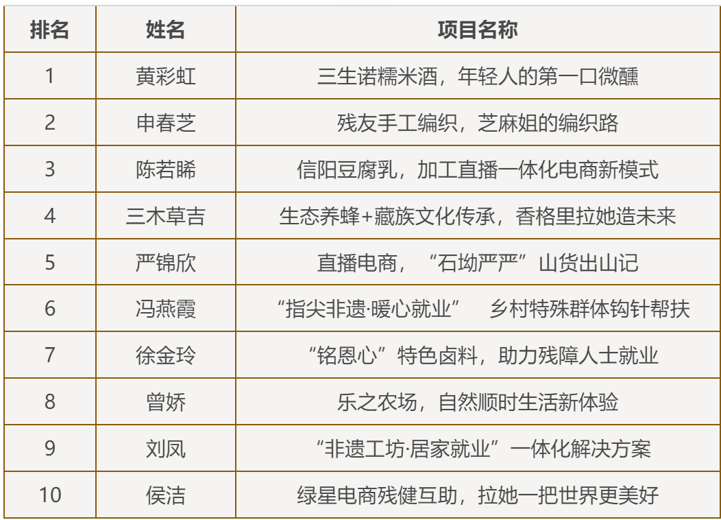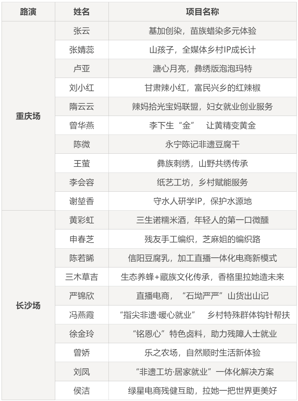 更多姐妹演讲内容将在绿芽视频号持续推出,欢迎关注!最终,以下10名姐妹脱颖而出,她们将和重庆场的10名姐妹一同进入木兰乡创汇全国巅峰对决,敬请期待!