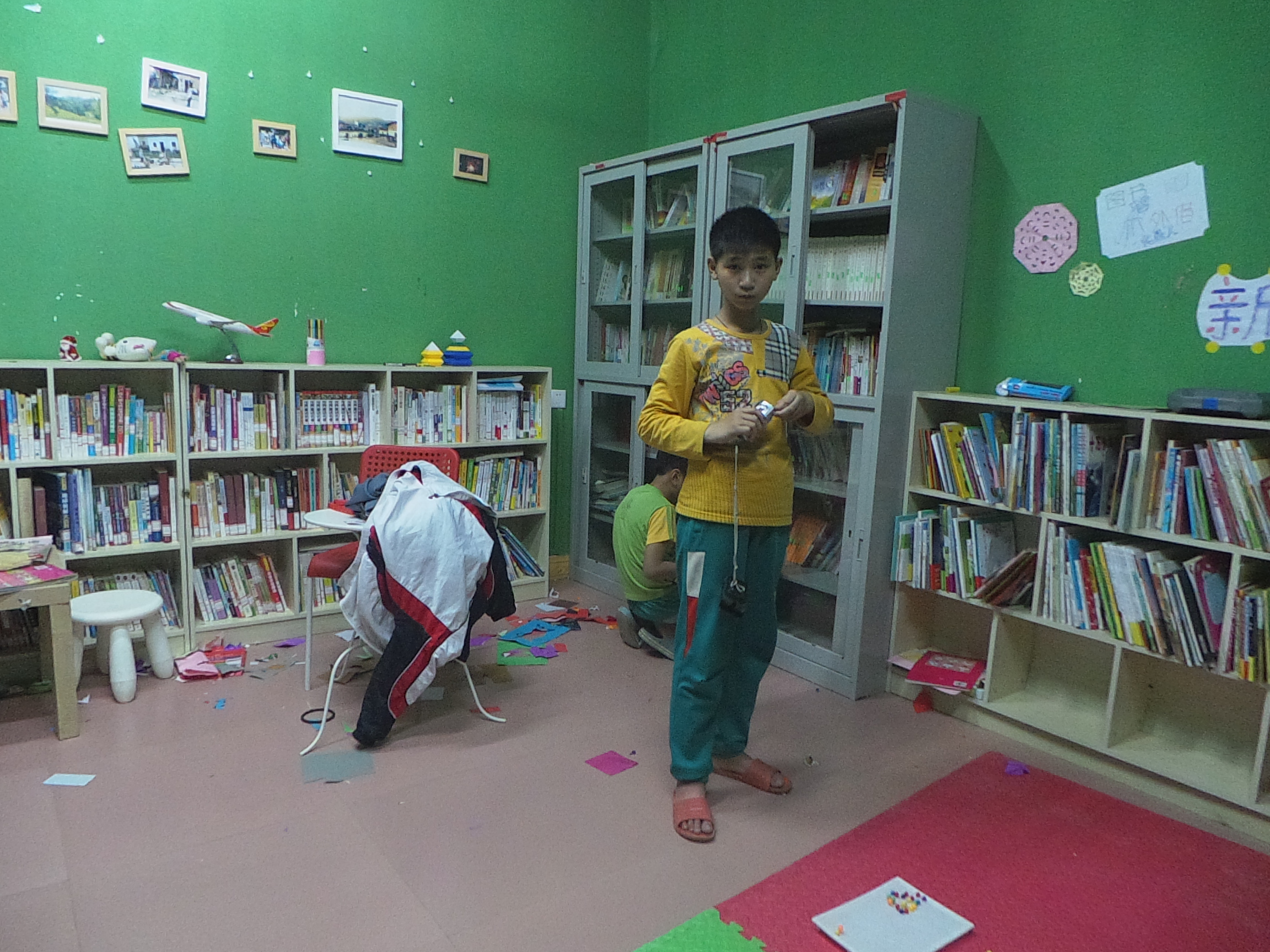 阅览室里有很多精美绘本书,平时幼儿园阶段的小伙伴最喜欢听绘本故事了,而读小学的小伙伴对绘本书也有兴趣哦。他们最喜欢的是临摹绘本书的上的图画,有时还画在大黑板上。恰好四月有个世界读书日(4.23)哈,在工作人员的引导下,读小学的小伙伴们参与了“我的绘本故事”的小组活动。小伙伴们先挑选一本自己最喜欢的绘本书,再挑选自己最喜欢的几种颜色的蜡笔,然后分别从绘本书中挑出一幅自己认为最好看的图画,开始对照着画。有意思的是,大家手中的画笔颜色不一定匹配原图颜色,而且没有太多画画基础的小伙伴大都不可能一模一样照原图出来,于是他们就边对照边创作了。这下子,每人都画出了自己的作品,还有的小伙伴配上自己编的故事。