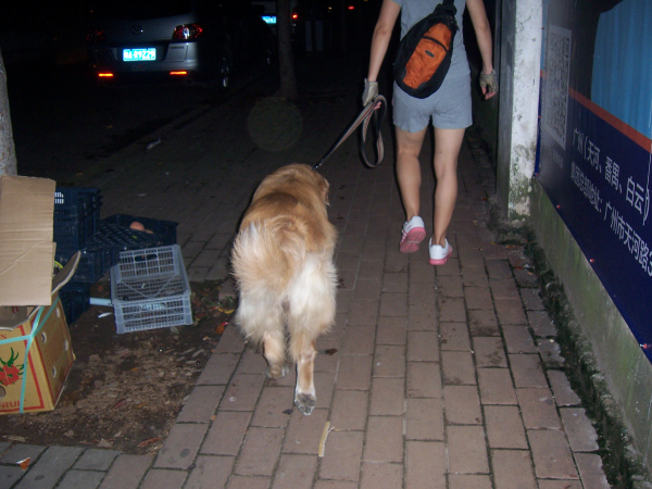 ●我们在天桥上看见一只很大的狗,跑下去看仔细。伍广宁 摄(稿费200元)