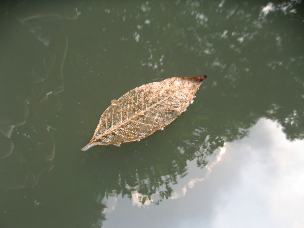 ●黄色的叶子和水中的倒影融在一起,我觉得很漂亮,就拍了。老师点评说是“一叶知秋”。林锡琳 摄(稿费80元)