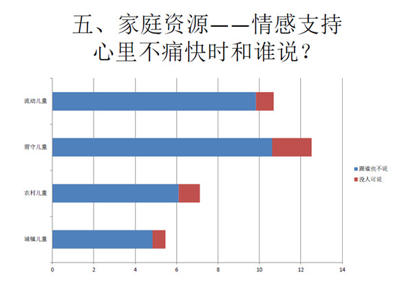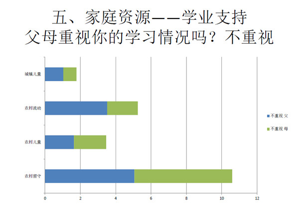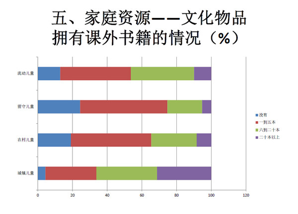 第六是有关家庭群体的差异性。这四类儿童的家长教育水平、读书环境、出游见识的机会、现代化教育设施的配置等都会有较大的差 异。我们在访谈过程中发现,流动儿童比如在写作文的时候则因为缺乏外出的机会,他们的作文素材也会少。