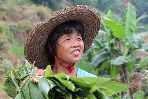 村子周围的山上长着许多粽叶,当天气晴好,阿姨们便会带上扁担和绳子,到山里采摘,摘回来的叶子要用热水煮几分钟,捞出来晾干备用。
