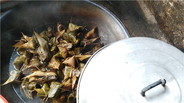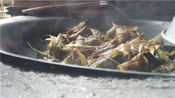 包好的粽子放到大锅中用柴火煮,约一小时后出锅,粽子才算制作完成。尽管制作粽子的过程并不容易,阿姨们还是每年还是会亲手包一些与家人一起品尝,包粽子的手艺也在一代一代间传承。