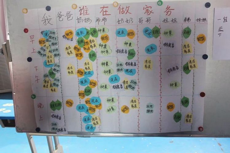 在最后一个关于家庭的游戏中,孩子们都发现了妈妈是参与家务劳动最多的人,是妈妈辛劳地操持家务,使每个人生活舒适。