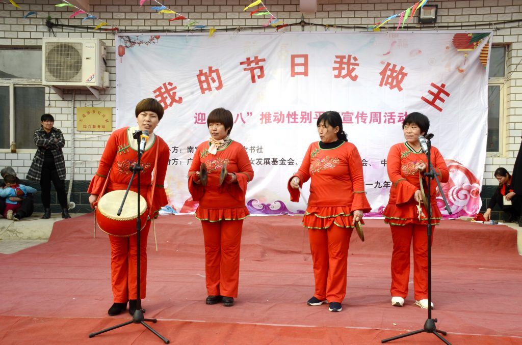 能写会唱的姐妹们还编写了“反家暴”快板书和三句半,用最通俗的方式来倡导村民反对家庭暴力。通过这次三八妇女节“推动性别平等”活动,好多村民真正意识到家庭暴力的危害,让更多的乡村姐妹意识到自己的权利。