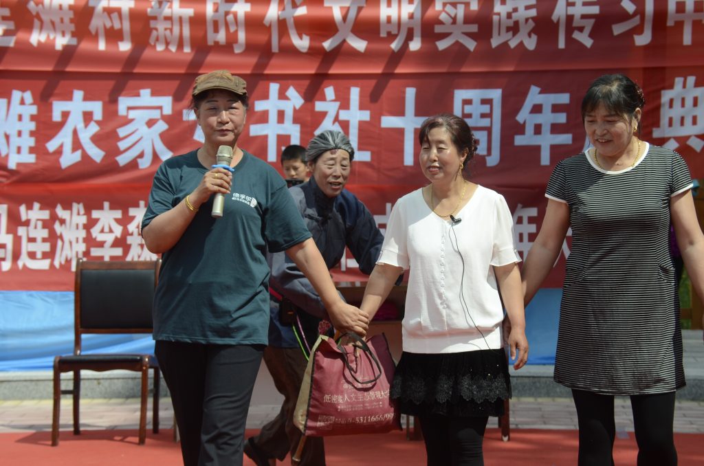 2019年6月23日,对于河北马连滩的村民们而言一定是个特殊的日子,在今天,她们迎来了马连滩农家女书社成立十周年庆晚会。姐妹们自编自导自演,忙前忙后自己“搞出了”一整台晚会,不仅让村里观众投入其中、赞不绝口,也给了书社十周年一份美好的礼物。