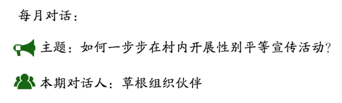 关于村庄内性别不平等现象的讨论激起了姐妹们的广泛兴趣,在河北正定美丽乡村社区服务中心和览表图书室组织下,草根组织的姐妹们又开展了两场线上讨论。本期通讯将在之前的基础上继续深入,将思考化为实践,探讨如何在村内一步步开展性别平等宣传活动。